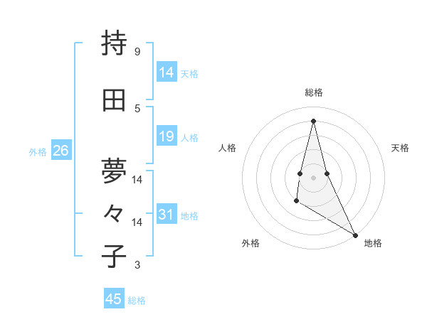 持田 夢々子さんを姓名の画数から五運を鑑定
