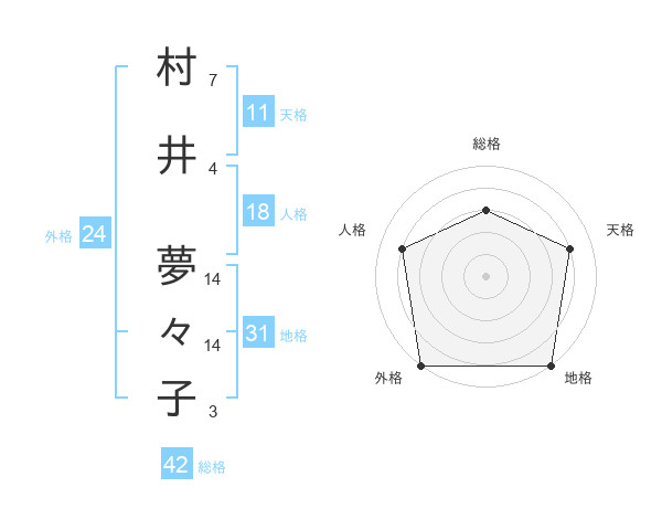 村井 夢々子さんを姓名の画数から五運を鑑定