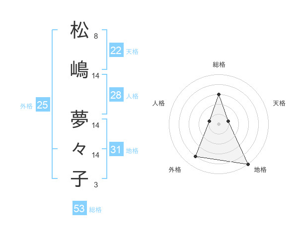 松嶋 夢々子さんを姓名の画数から五運を鑑定