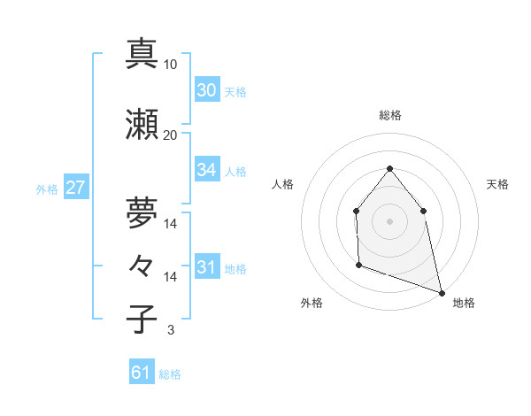 真瀬 夢々子さんの地格は31画の5点!