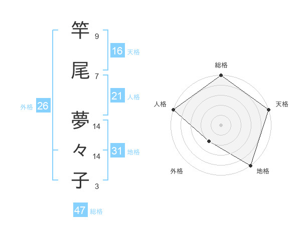 竿尾 夢々子さんの総格は47画の5点!