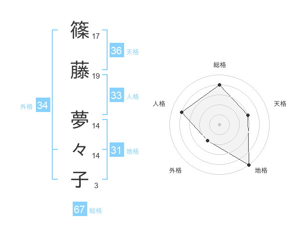 篠藤 夢々子さんの総格は67画の4点!