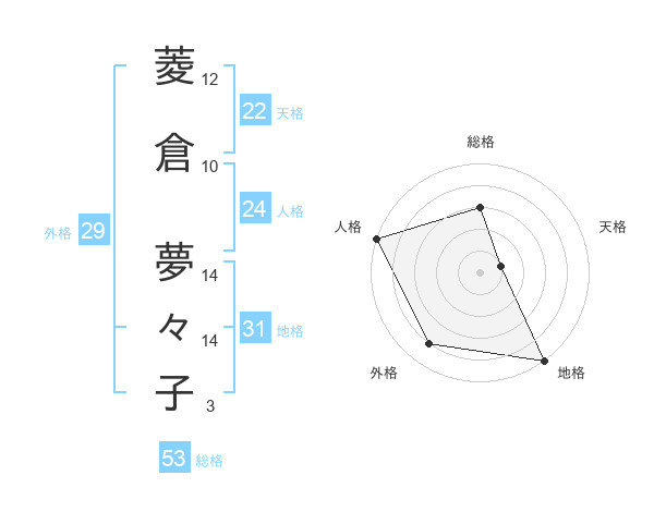 菱倉 夢々子さんの地格は31画の5点!