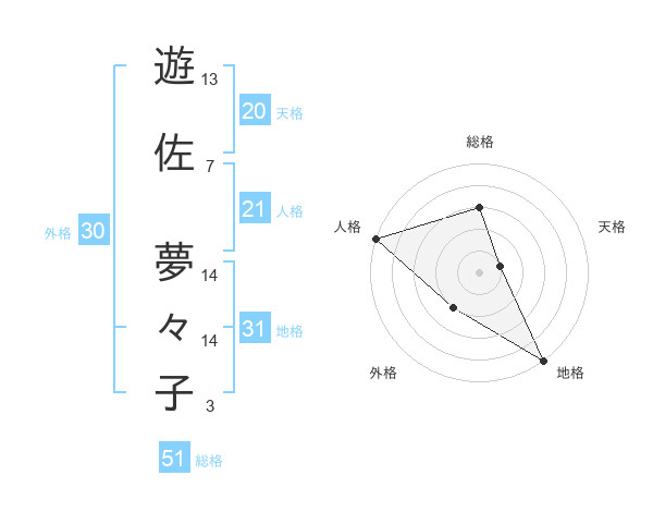 遊佐 夢々子さんを姓名の画数から五運を鑑定