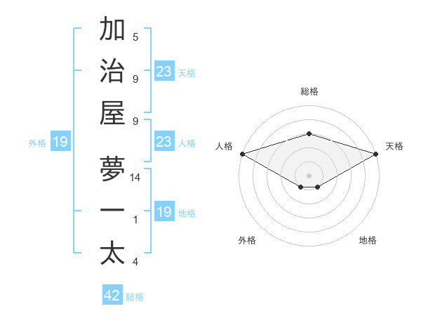 加治屋 夢一太さんの天格は23画の5点