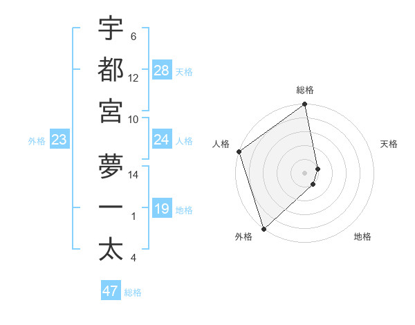 宇都宮 夢一太さんを姓名の画数から五運を鑑定