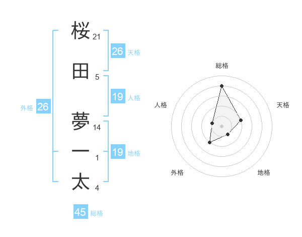桜田 夢一太さんの総格は45画の4点!