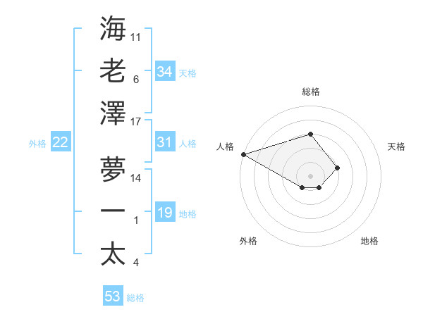 海老澤 夢一太さんの総格は53画の3点!