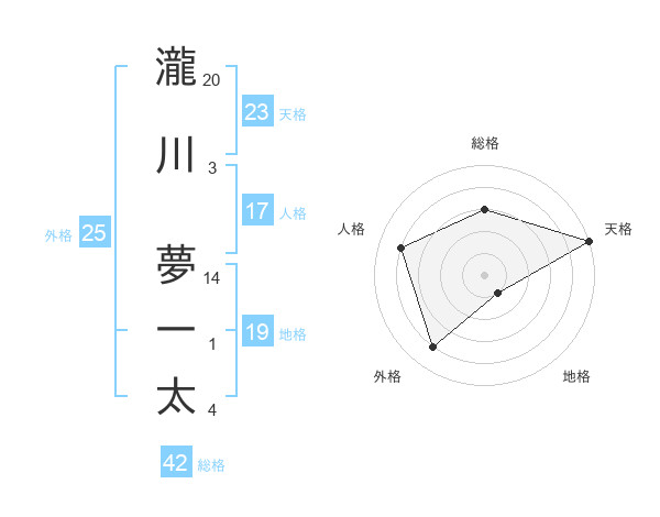 瀧川 夢一太さんを姓名の画数から五運を鑑定