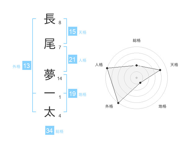 長尾 夢一太さんを姓名の画数から五運を鑑定