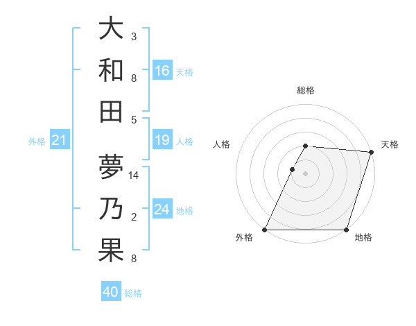 大和田 夢乃果さんを姓名の画数から五運を鑑定