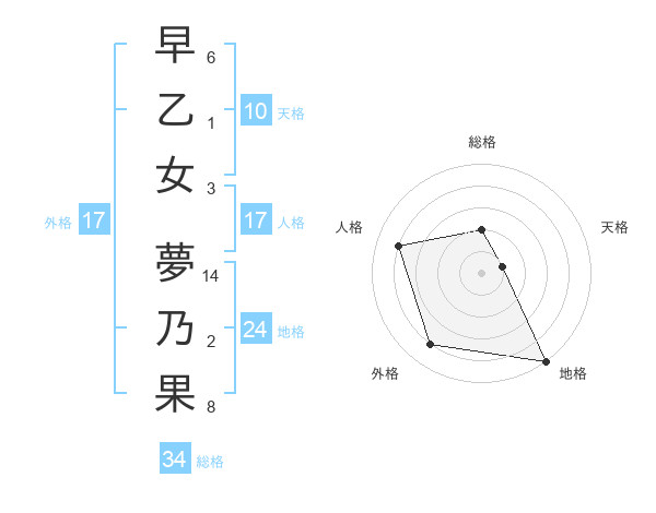 早乙女 夢乃果さんの総格は34画の2点!