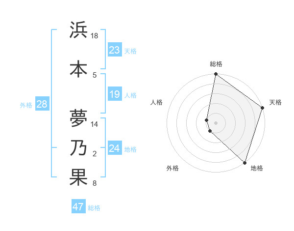 浜本 夢乃果さんを姓名の画数から五運を鑑定