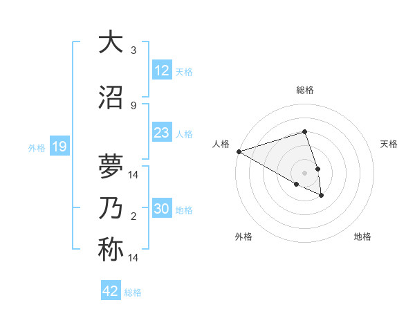 大沼 夢乃称さんを姓名の画数から五運を鑑定