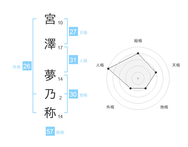 宮澤 夢乃称さんを姓名の画数から五運を鑑定