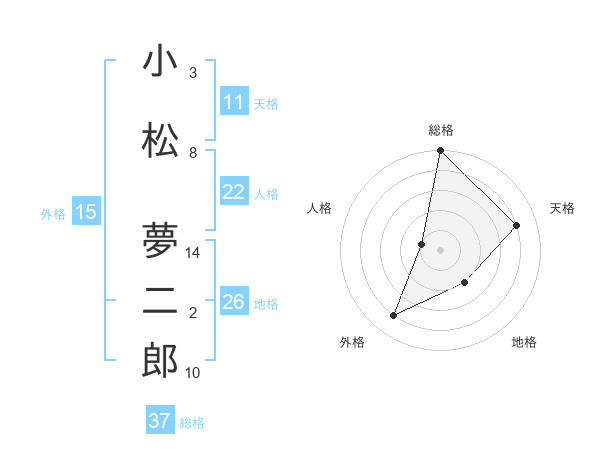 小松 夢二郎さんの総格は37画の5点!