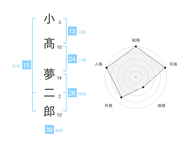 小髙 夢二郎さんを姓名の画数から五運を鑑定