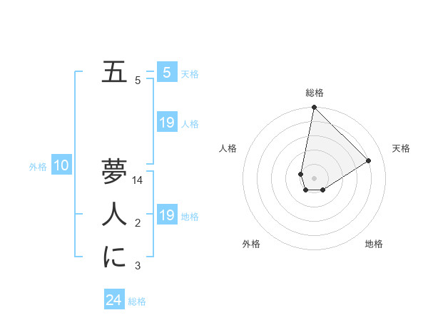 五 夢人にさんの総格は24画の5点!