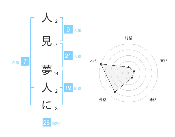 人見 夢人にさんの人格は21画の5点