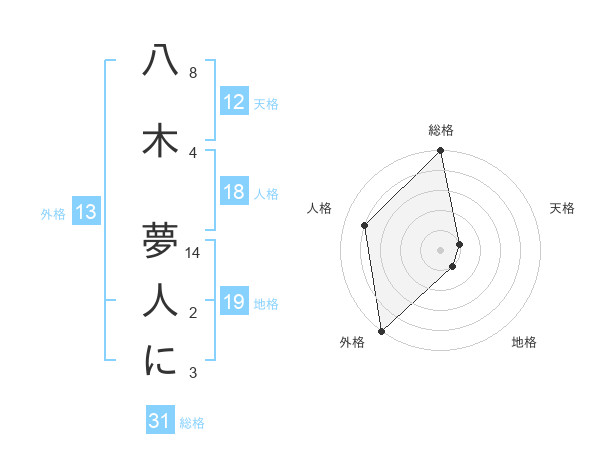 八木 夢人にさんの外格は13画の5点!