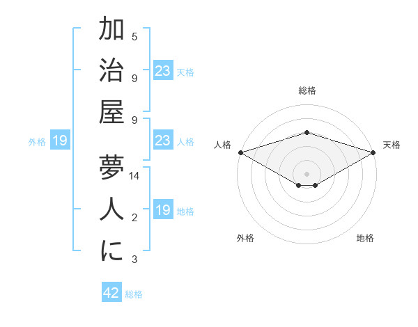 加治屋 夢人にさんを姓名の画数から五運を鑑定