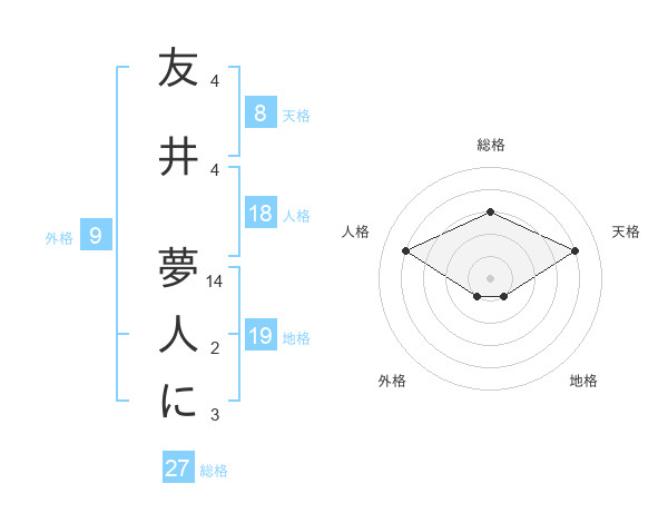 友井 夢人にさんを姓名の画数から五運を鑑定