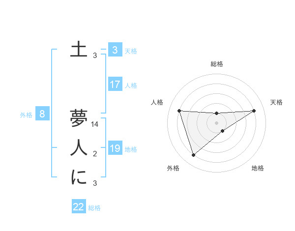 占い結果は姓名判断である以上、良い場合も悪い場合もありますが、決してお名前を誹謗中傷するものでなく、画数の自動計算によって得られたものです。また、本サイトの検索によって得られた鑑定結果で、第三者を誹謗中傷したり名誉を棄損するような行為を禁じます。