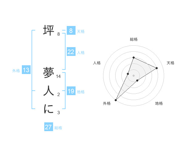 坪 夢人にさんを姓名の画数から五運を鑑定