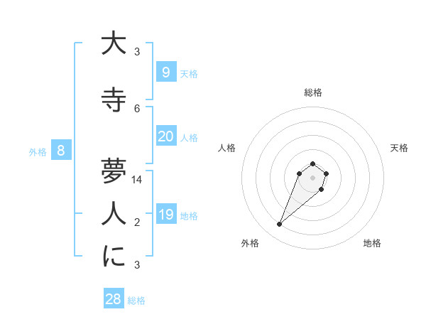 大寺 夢人にさんの外格は8画の4点!