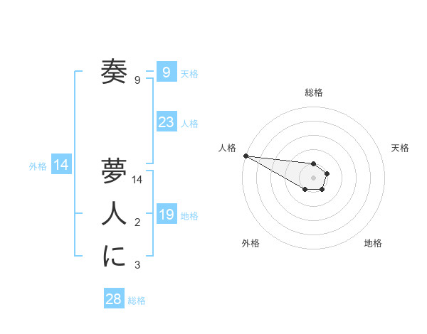 奏 夢人にさんの外格は14画の1点!