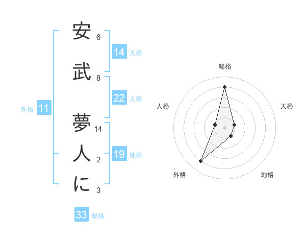 安武 夢人にさんの総格は33画の4点