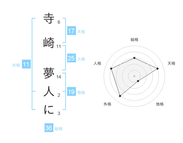 寺崎 夢人にさんの外格は11画の4点