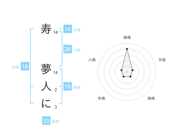 寿 夢人にさんを姓名の画数から五運を鑑定