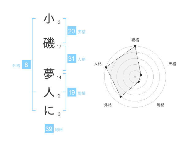 小磯 夢人にさんの外格は8画の4点!