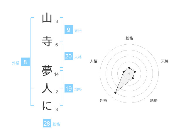 山寺 夢人にさんの総格は28画の1点!