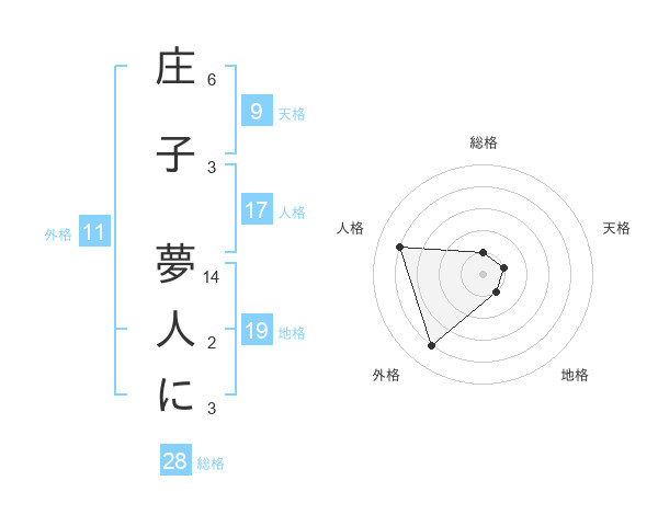 庄子 夢人にさんを姓名の画数から五運を鑑定