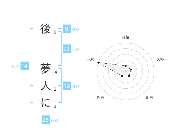 後 夢人にさんの総格は28画の1点!
