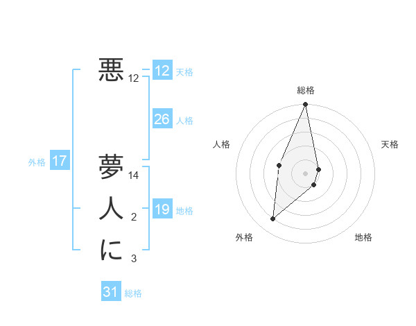 悪 夢人にさんの総格は31画の5点!