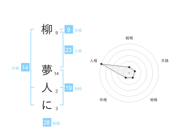 柳 夢人にさんの総格は28画の1点!