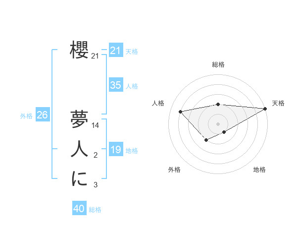 櫻 夢人にさんの天格は21画の5点!