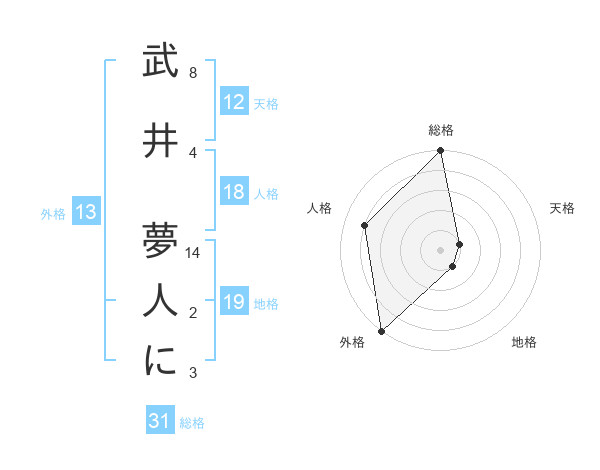 武井 夢人にさんの外格は13画の5点!