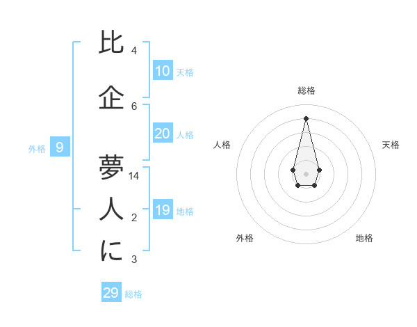 比企 夢人にさんを姓名の画数から五運を鑑定