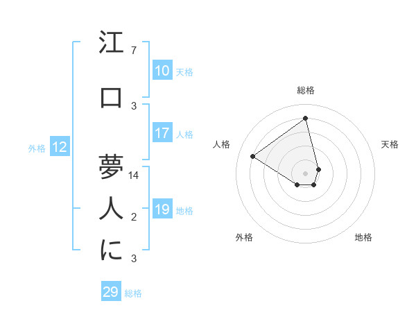 江口 夢人にさんの総格は29画の4点!