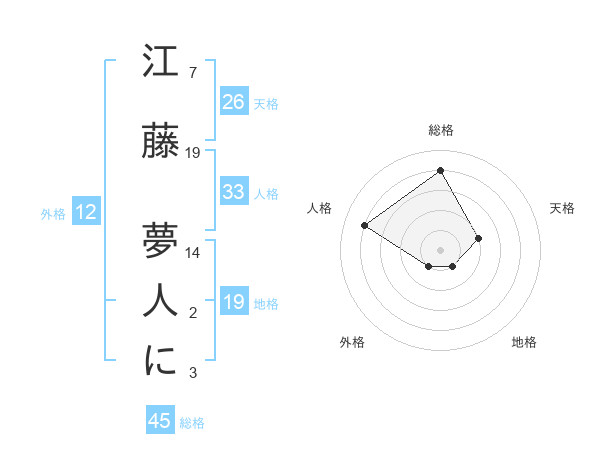 江藤 夢人にさんを姓名の画数から五運を鑑定