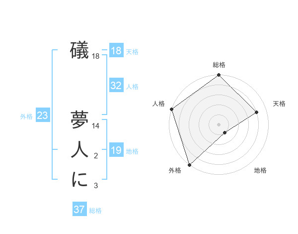 礒 夢人にさんの外格は23画の5点!