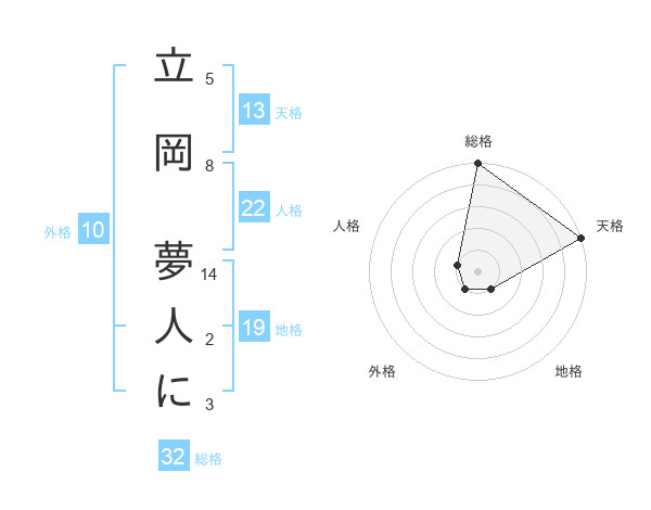 立岡 夢人にさんを姓名の画数から五運を鑑定