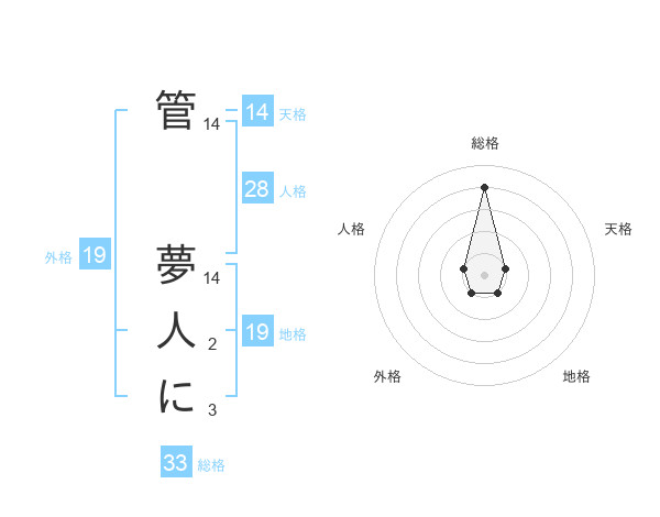 管 夢人にさんの天格は14画の1点!