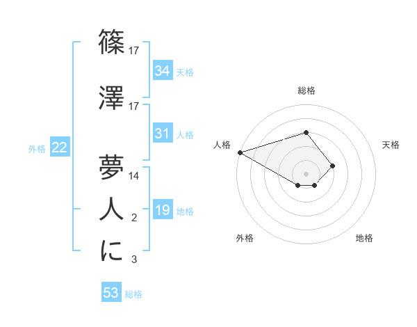 篠澤 夢人にさんを姓名の画数から五運を鑑定