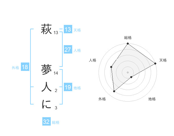 萩 夢人にさんを姓名の画数から五運を鑑定