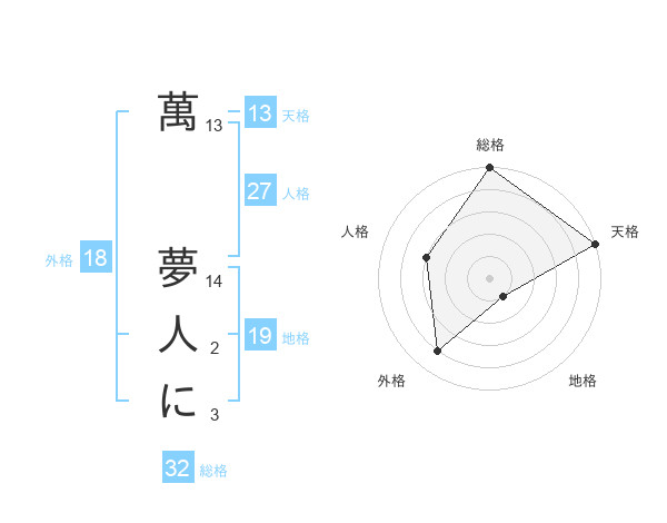萬 夢人にさんを姓名の画数から五運を鑑定